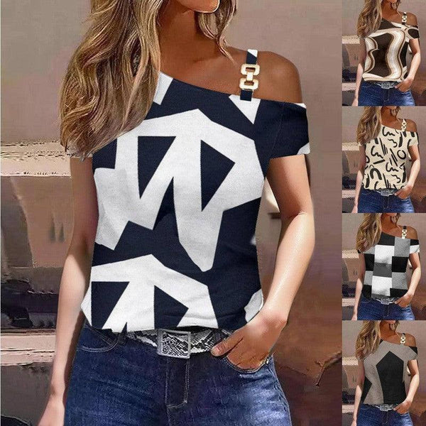 Женская летняя простота с металлической пряжкой с короткими рукавами и принтом