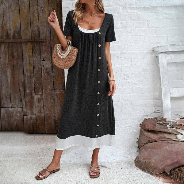 Женская мода темперамент досуг короткий рукав U-образным вырезом