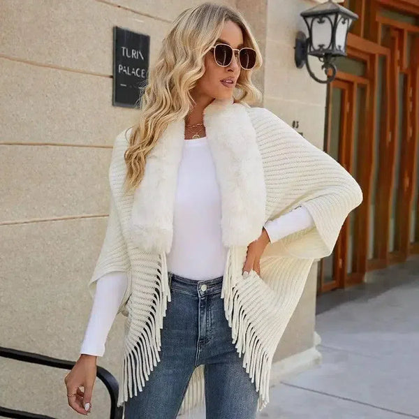Описание товара: Женский меховой воротник с кисточкой вязаная шаль