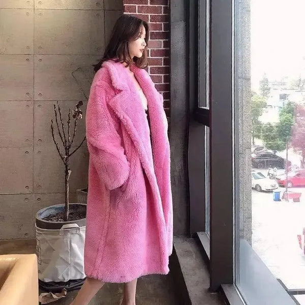 Женское длинное пальто из меха и шерсти ягненка