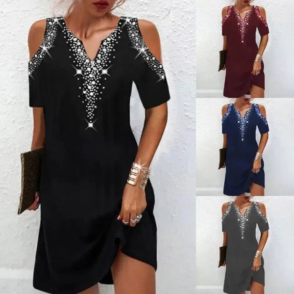 Женское платье с V-образным вырезом на плече с принтом и коротким рукавом