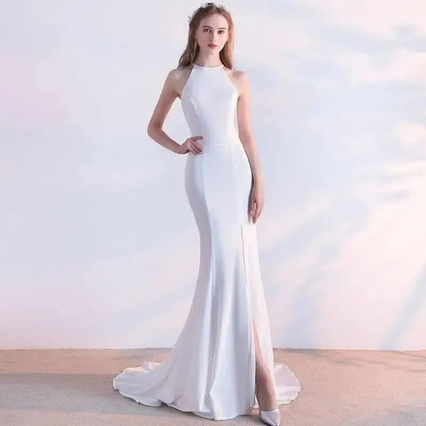 Описание товара: "Ведущая выглядит стройной и длинное платье женщины"