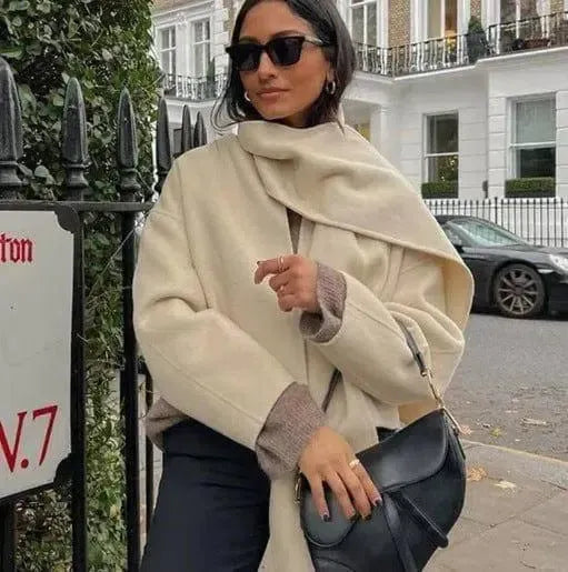 Женская мода Повседневная чисто белый кардиган шерстяное пальто