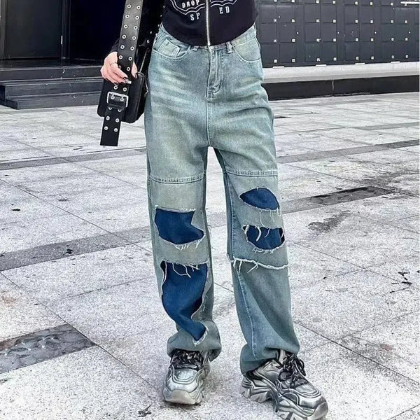 .- Стиль: Прямые брюки с современным рваным дизайном .