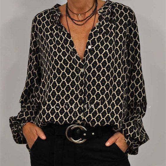 Женская весенняя футболка с V-образным вырезом и длинным рукавом с принтом моды