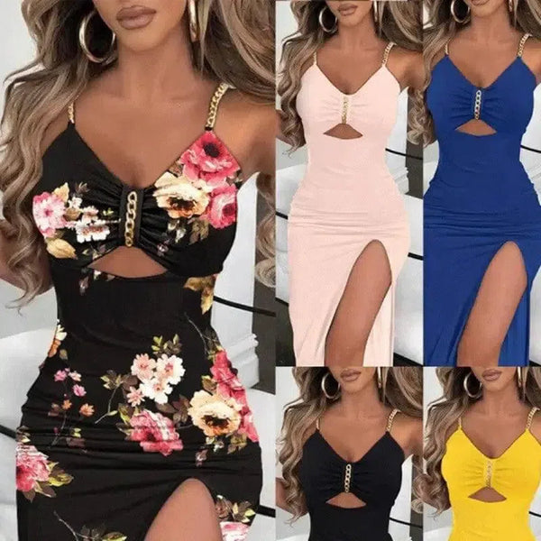 Женское платье-слинг с цепочкой на плечевом ремне