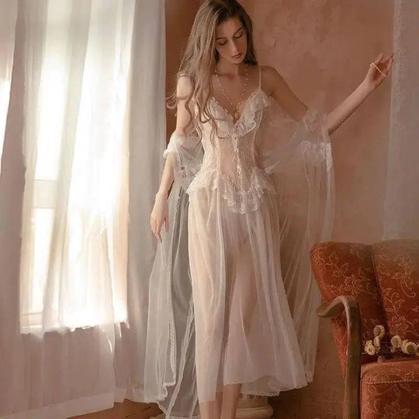Женская сорочка из белого полиэстера с кружевным стретчем