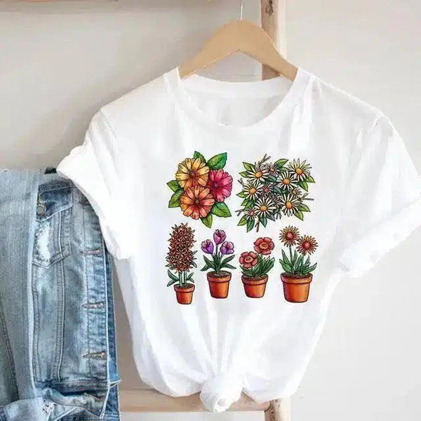 Футболка с цветочным принтом "Растения в горшках" для повседневной носки