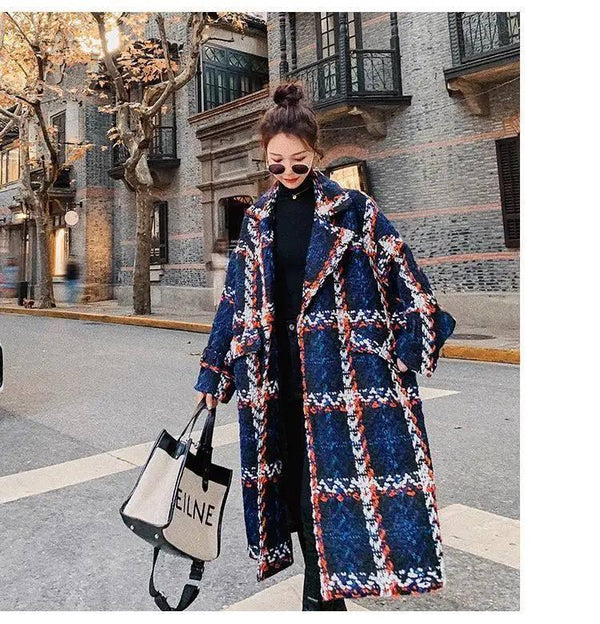 Контрастная клетка Темпераментный костюм Воротник Свободный Прямой