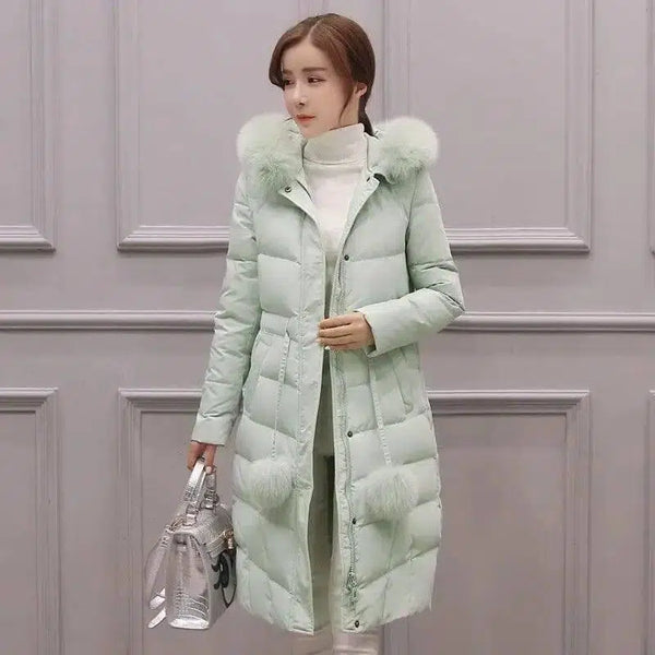 Корейское пуховое хлопковое пальто с подкладкой для женщин выше колена