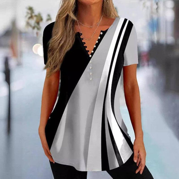 Летний женский повседневный топ на пуговицах с геометрическим принтом
