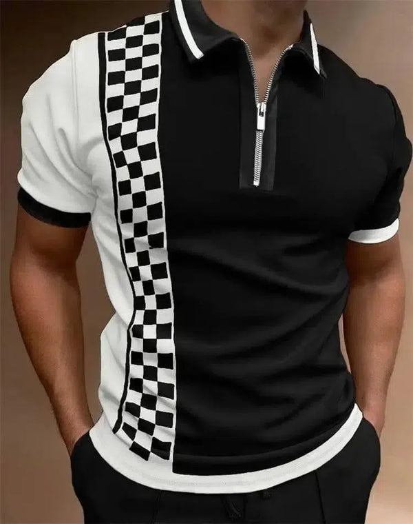 Мода Свободный лацкан Casual Print T-Shirt Zipper POLO Shirt