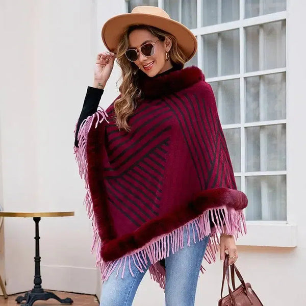 Моросящий Меховой Воротник Пуловер Кисточкой Вязаная Накидка Для Женщин