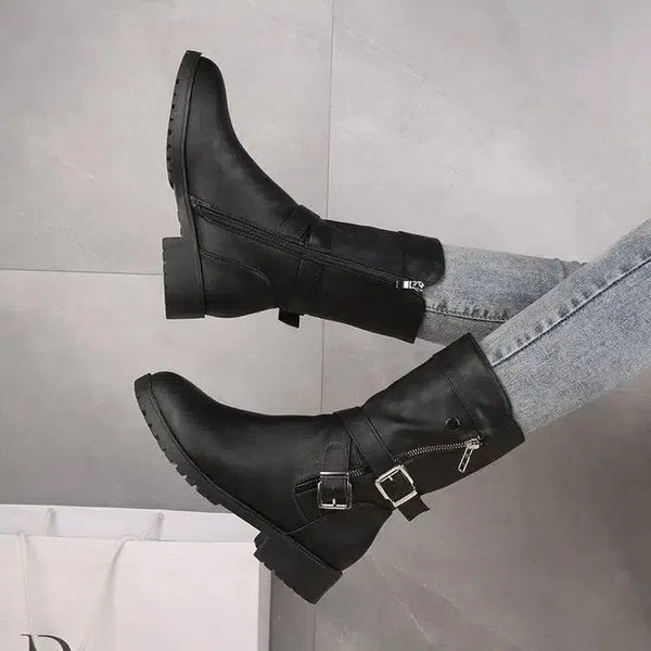 Низкий каблук Ремень Пряжка Мода Мартин Сапоги Женщины