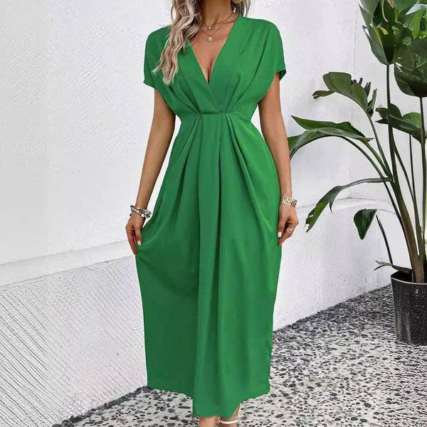 Сплошной цвет с глубоким V-образным плечом и эластичной талией