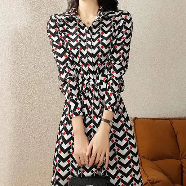 Женское платье с длинным рукавом и принтом на талии