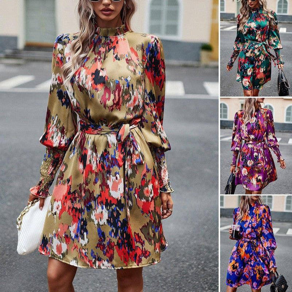Платье с принтом Осеннее элегантное платье с длинным рукавом