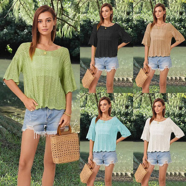 Полые моды с коротким рукавом Повседневная женская трикотажная одежда