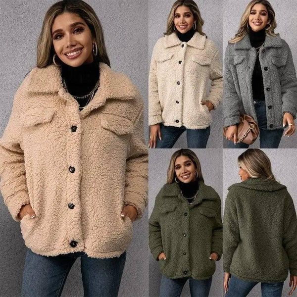 Свободный случайный лацкан плюшевая куртка барашек флис пальто