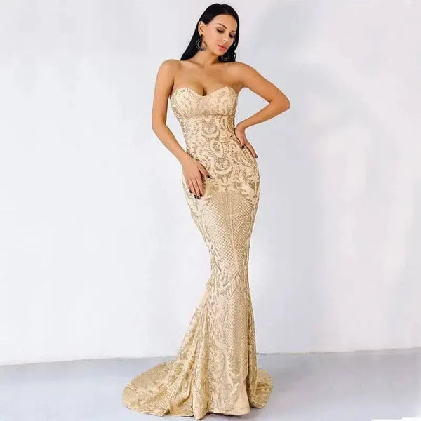 ЭЛЕГАНТНОЕ ВЕЧЕРНЕЕ ПЛАТЬЕ БЕЗ БРЕТЕЛЕК С ГЕОМЕТРИЧЕСКИМ УЗОРОМ