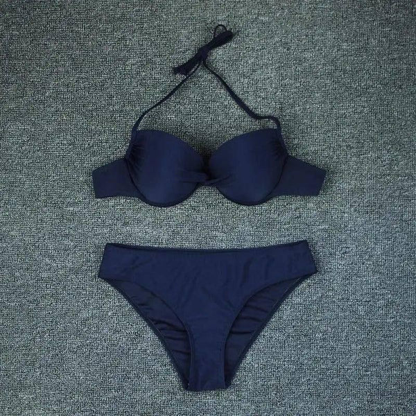 Сплошной цвет твердый мешок без спины бикини купальник женщины