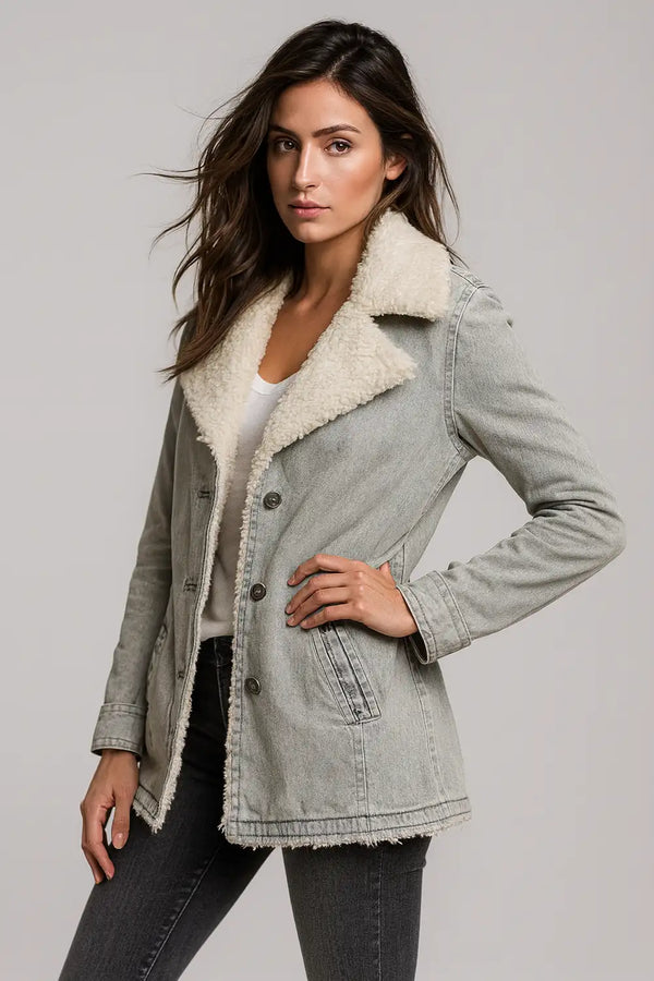 - Тип одежды: Джинсовая куртка с подкладкой из шерпы .