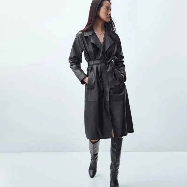Стильный тренч из искусственной кожи с поясом