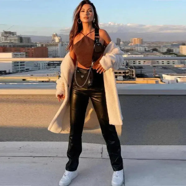 Брюки из натуральной кожи Женщины Повседневная PU кожаные брюки Брюки