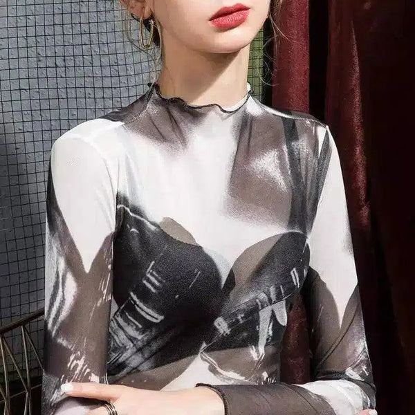 Смелые элементы: Смелый абстрактный узор в сочетании с прозрачным материалом создает остромодный, но стильный элемент, делая этот топ универсальным как для дневного, так и для вечернего ношения.
