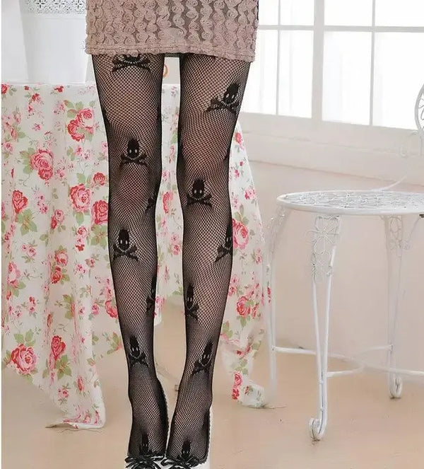 Черные кружевные чулки с черепом