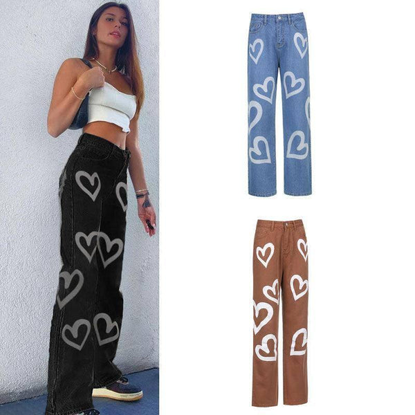 Широкие женские джинсы с принтом любви, прямые свободные светло-голубые / 2XL