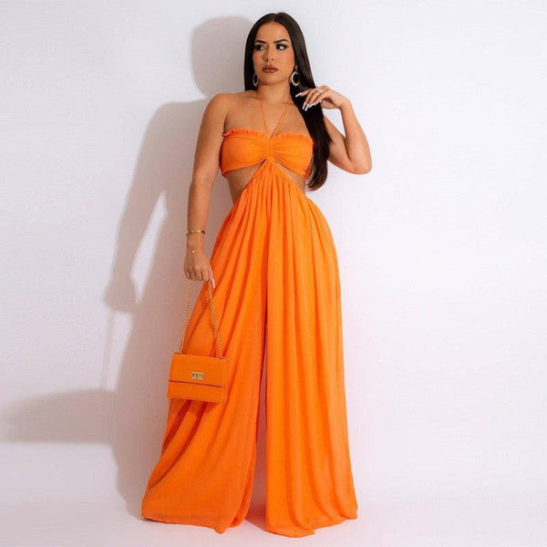 Шифоновый комбинезон с обнаженной спиной и широкими ногами европейский