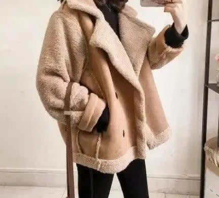 Почувствуйте элегантность и комфорт с пальто из шерсти ягненка Lovemi, которое идеально подходит для многослойности в прохладное время года.