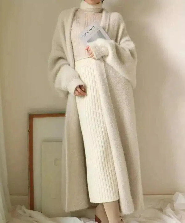 Женский длинный вязаный кардиган с водолазкой