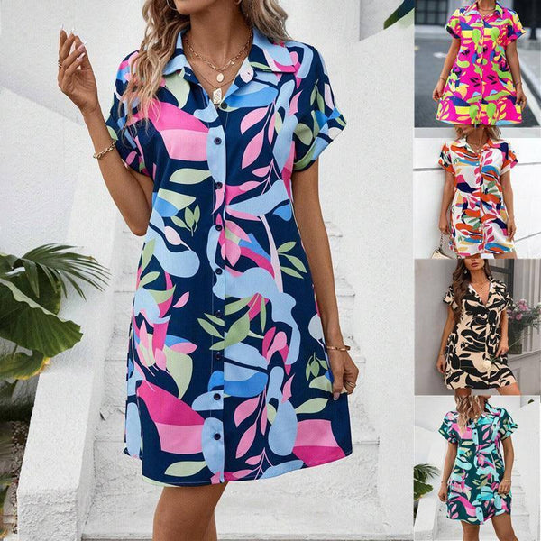 Новый цветочный принт короткий рукав рубашка платье летняя мода