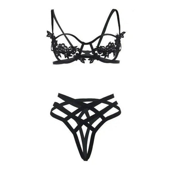 - В комплект входит: Бюстгальтер, пояс с подвязками и подходящие стринги