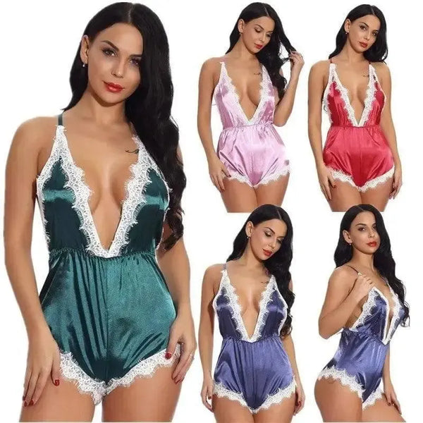 - Пижама из атласного кружева с перекрестным дизайном на спине .