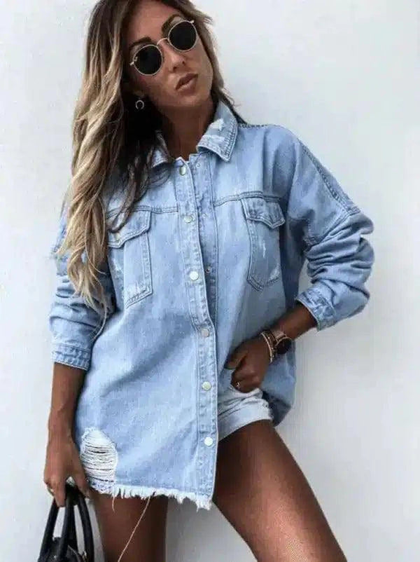 Женская повседневная джинсовая рубашка с карманами