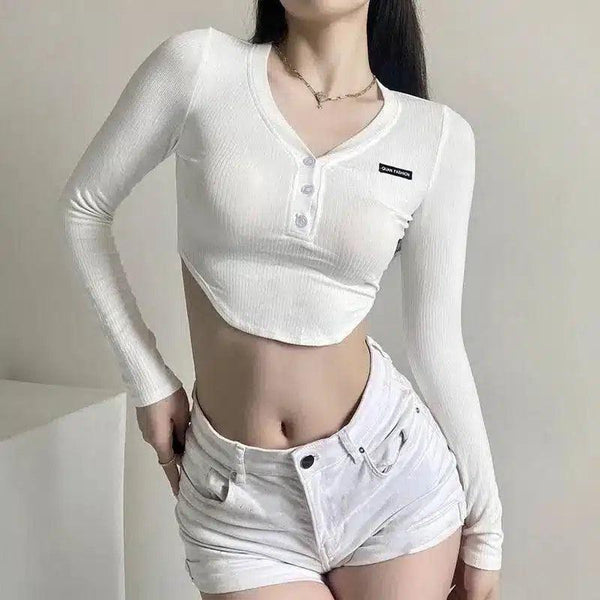 Женский ребристый кроп-топ с деталями на пуговицах