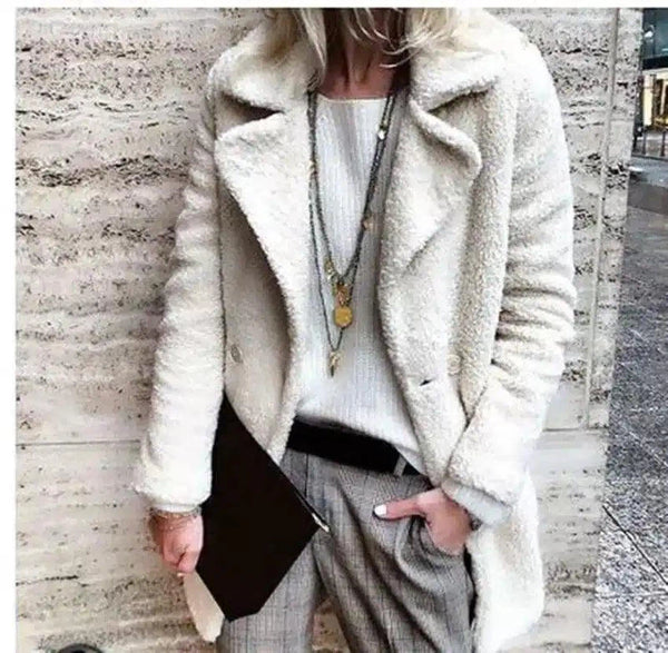 - Дополнительные особенности: Двубортная застежка и боковые карманы .