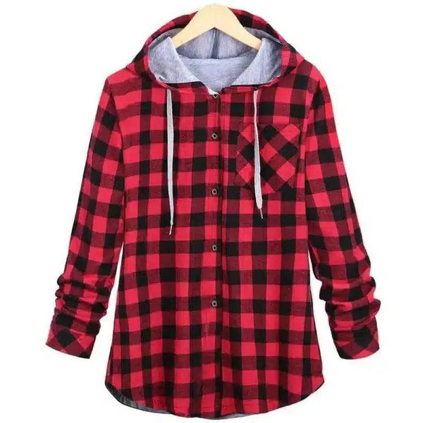 Фланелевая клетчатая рубашка с капюшоном и карманами