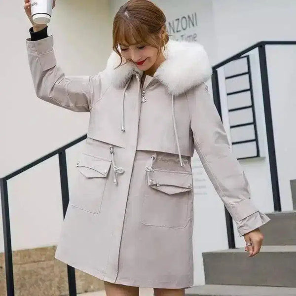 Женское зимнее пальто с воротником из искусственного меха и карманами