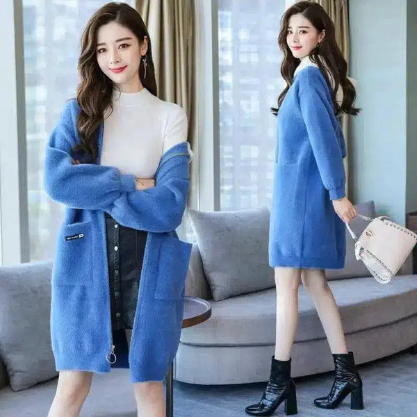 Женское вязаное платье-кардиган с длинным рукавом