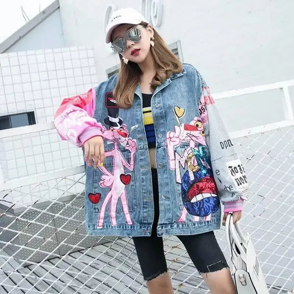 Мультфильм леопард Sequin Print стежка средней длины джинсы