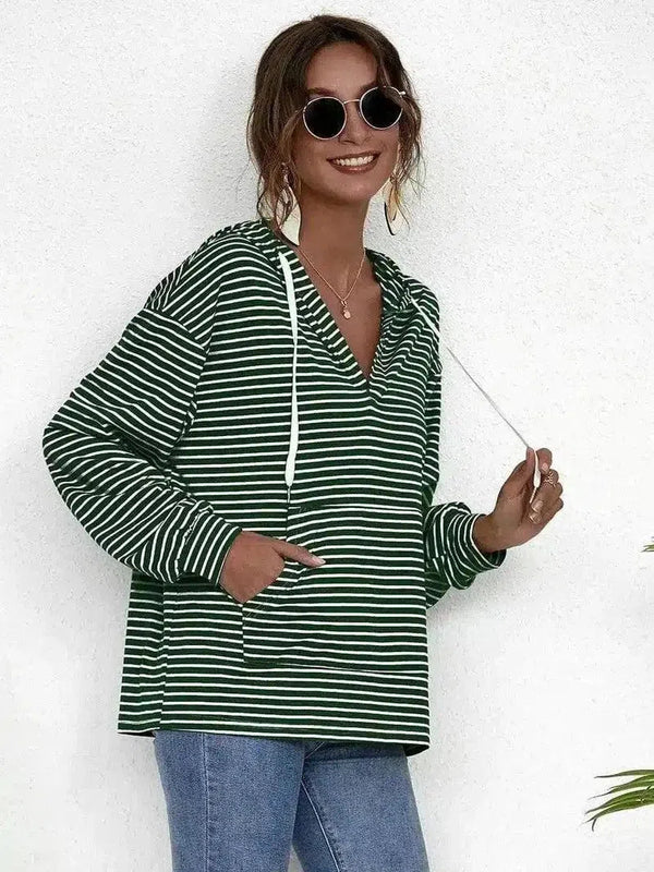 Полосатый пуловер с капюшоном и передним карманом