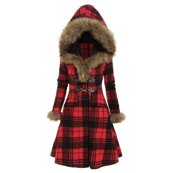 - Вырез горловины: высокий воротник с отделкой из искусственного меха