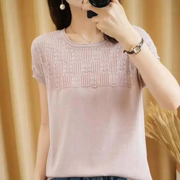 Женский трикотажный топ с коротким рукавом и текстурированным рисунком