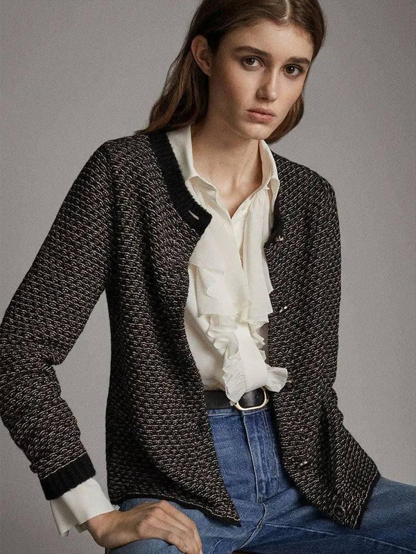 Черное текстурированное короткое пальто с длинными рукавами и трикотажным кардиганом