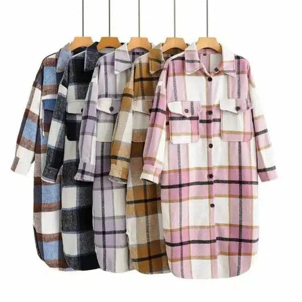 Контрастный плед Casual Fashion Simple Long Woolen Coat