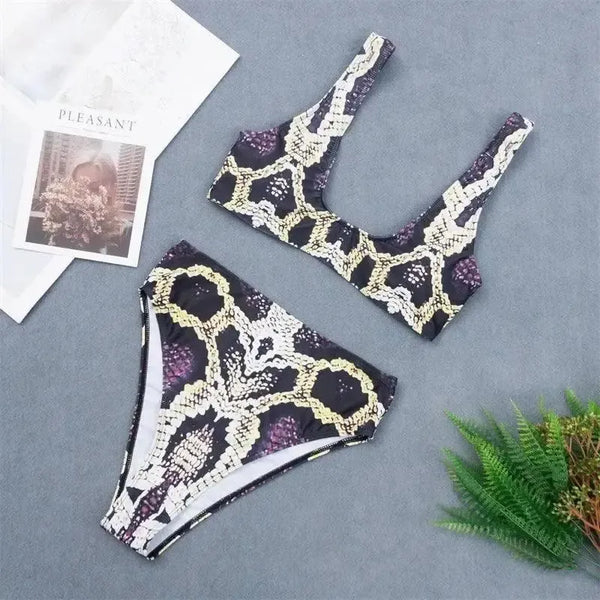 - Дизайн: Комплект бикини из двух частей со стильным звериным принтом.